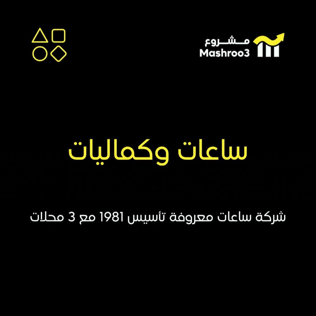 شركة ساعات وكماليات وهدايا تأسيس سنة 1981 - شامل 3 محلات بمحافظات مختلفه