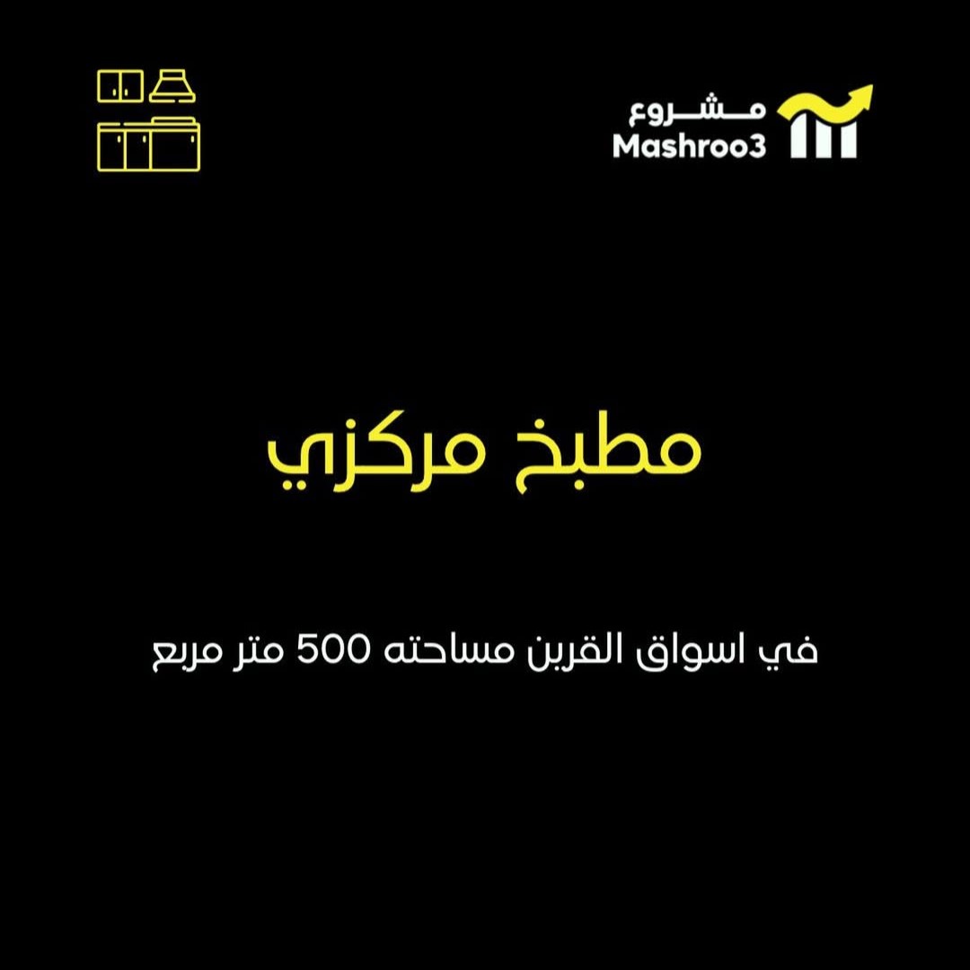 للبيع مطبخ مركزي لتجهيزات غذائيه مجهز بالكامل في اسواق القرين بموقع مميز مع غرفه ثلاجه وغرفه فريزر ومعدات المطبخ بالكامل على شارع رأيسي له مدخلين واحد منهم سلم متحرك
