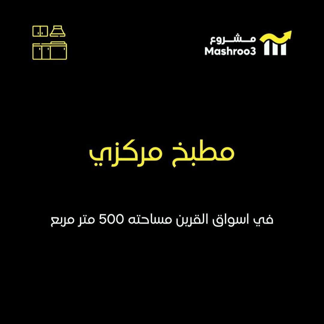 للبيع مطبخ مركزي لتجهيزات غذائيه مجهز بالكامل في اسواق القرين بموقع مميز مع غرفه ثلاجه وغرفه فريزر ومعدات المطبخ بالكامل على شارع رأيسي له مدخلين واحد منهم سلم متحرك