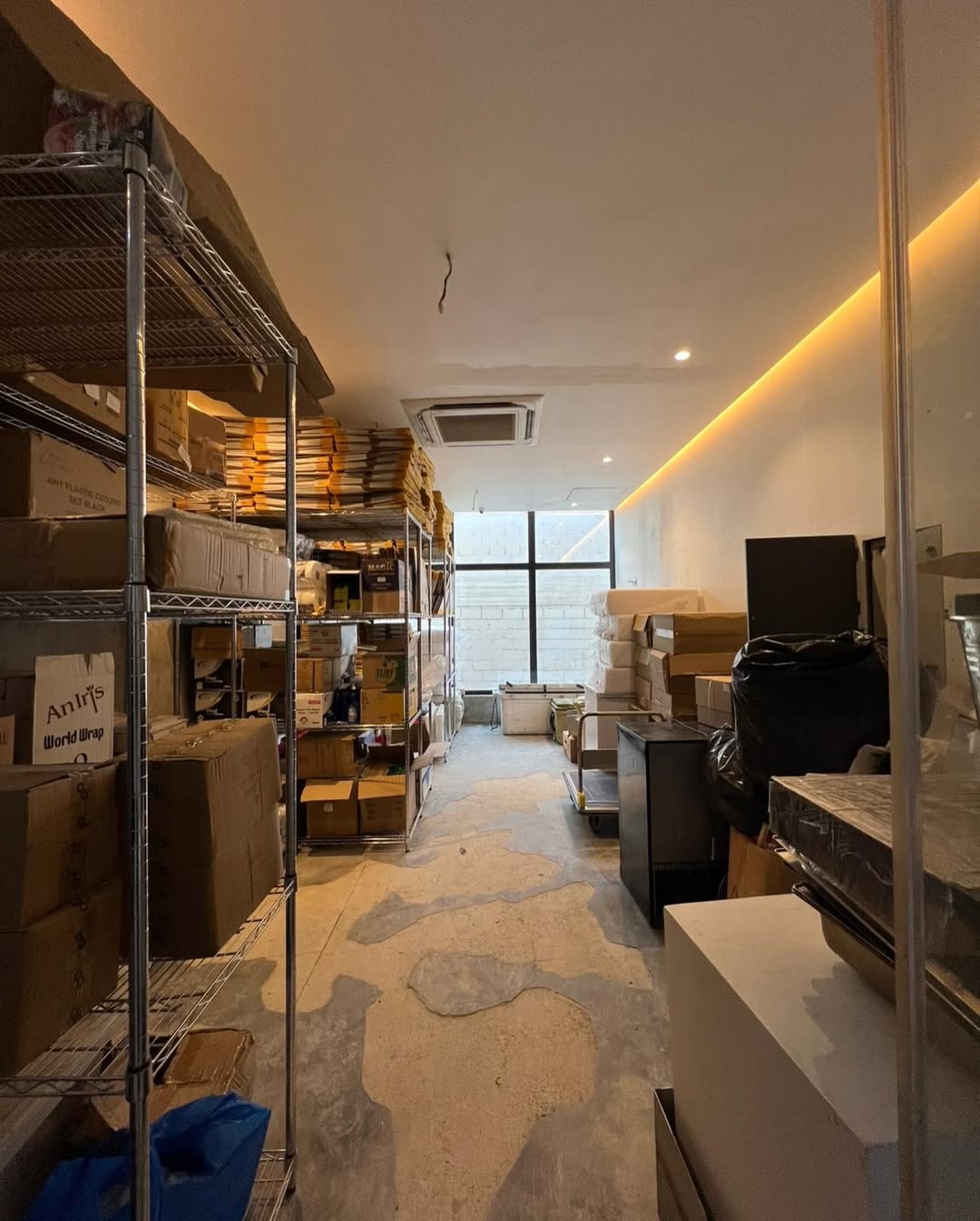 150 متر مربع (مطبخ سرداب 54 متر + مطبخ سرداب 30 متر + مخزن ميزانين 30 متر + معرض دور ارضي 38 متر)