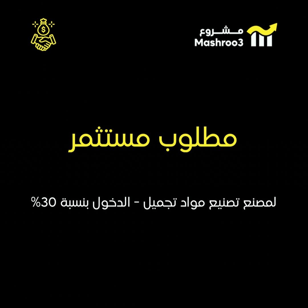 مطلوب شريك ممول لمصنع تصنيع مواد تجميل